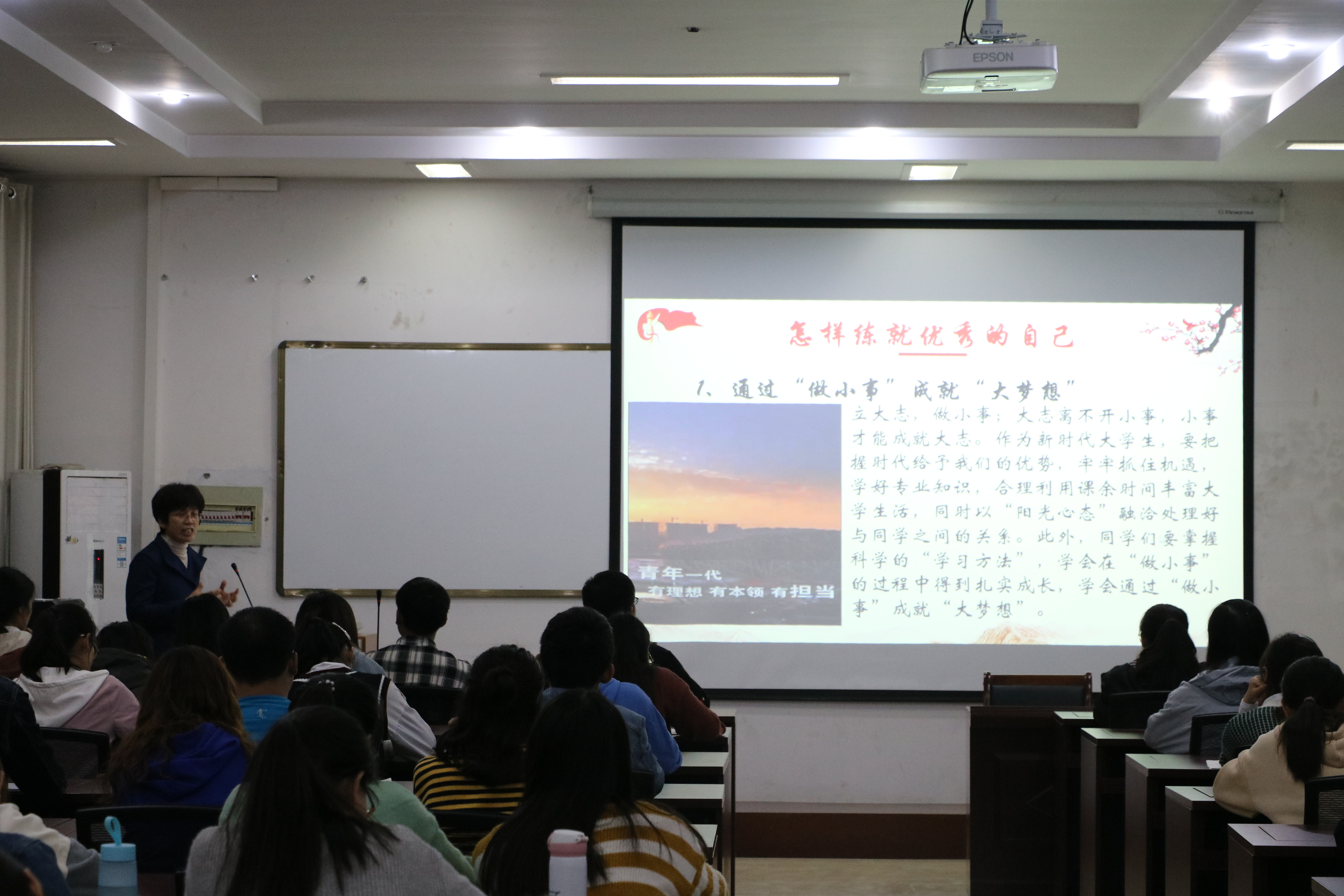 陈树艳书记此次党课题目是《怎样做一个新时代的优秀青年》,内容包括四部分,即“新时代”的寓意、习近平寄语新时代青年、争做新时代“三有青年”、怎样练就优秀的自己等。陈书记围绕怎样做新时代“三有青年”要求同学们在新的时代要热爱祖国,忠于人民;要有志,立鸿鹄志,做奋斗者;要求真,求真学问,有真本领。最后她结合同学们实际生活,要求同学们青年从做“小事”,成就“大梦想”、通过“重是非”,培养“价值观”、通过“贵坚持”,成就“大目标”三方面来练就优秀的自己。