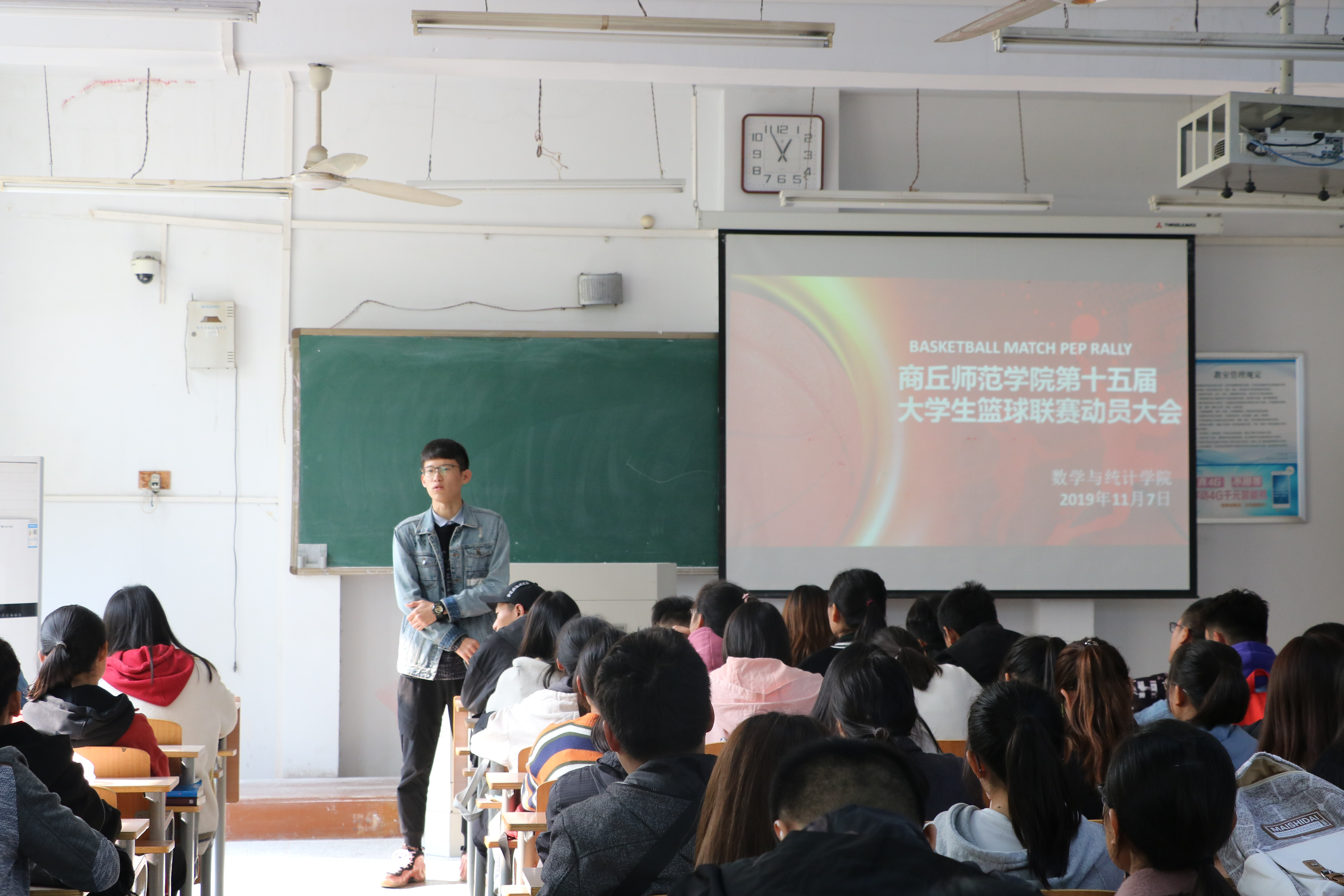 为进一步推动体育活动开展,确保我院篮球赛顺利进行。11月7日下午一点,英国威廉希尔公司在1号教学楼204室举行了“商丘师范学院第十五届大学生篮球联赛”动员大会。此次会议由学生会主席臧佳宝主持,全体参赛队员及学生会全体成员参与其中。