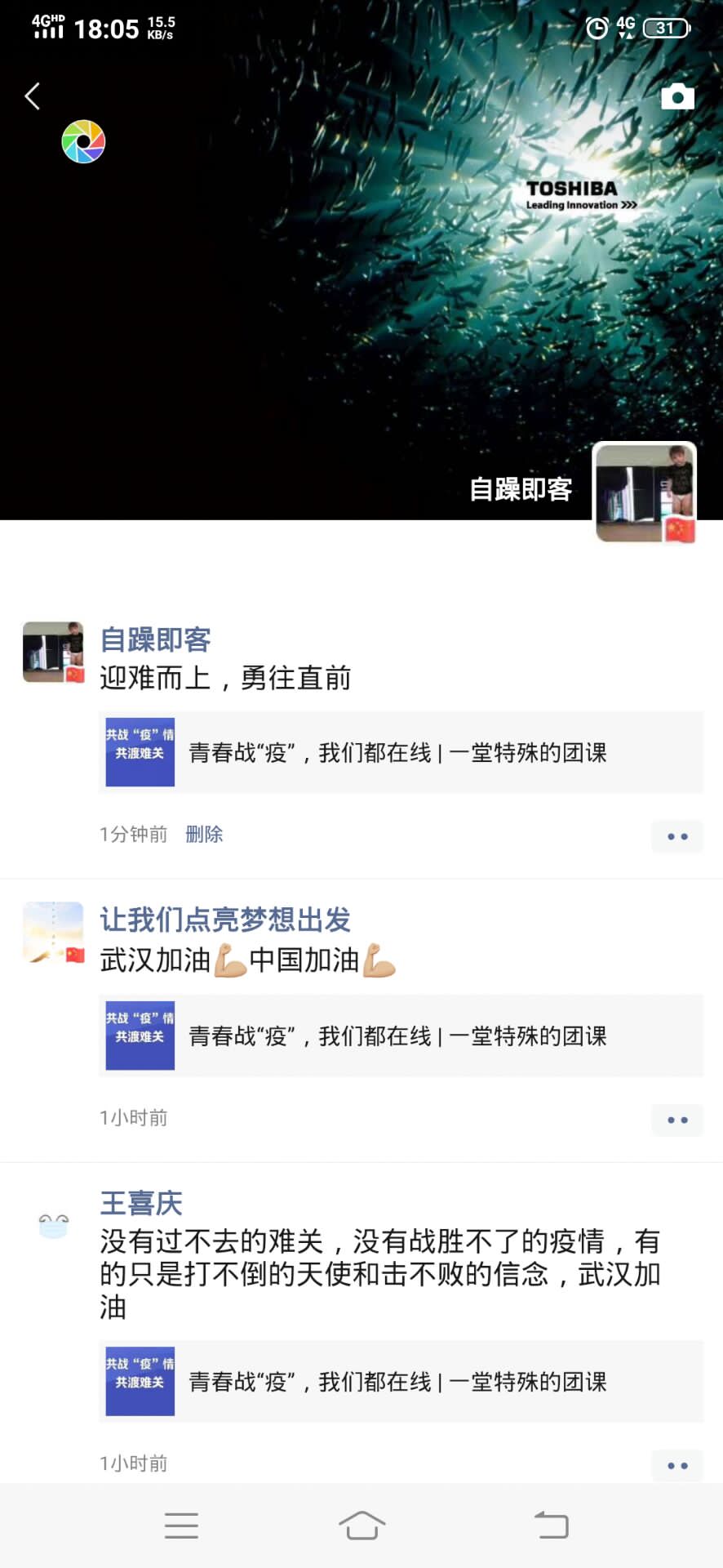 本次团课以网课的形式展开,同学们认真的学习了团课,并自觉转发朋友圈。“谣言亦是病毒,科学才是良方”,本次团课向同学们传授了有关新型冠状病毒各方面知识以及辨别谣言的方法,更呼吁同学们不信谣、不造谣、不传谣,以科学的观念、理智的心态面对疫情。团课结束后,同学们针对团课内容以及实际疫情展开积极讨论。大家纷纷表示要积极配合疫情防护工作,共同抵御新冠肺炎,自觉担负起时代赋予的责任与使命,主动担当、不负韶华。