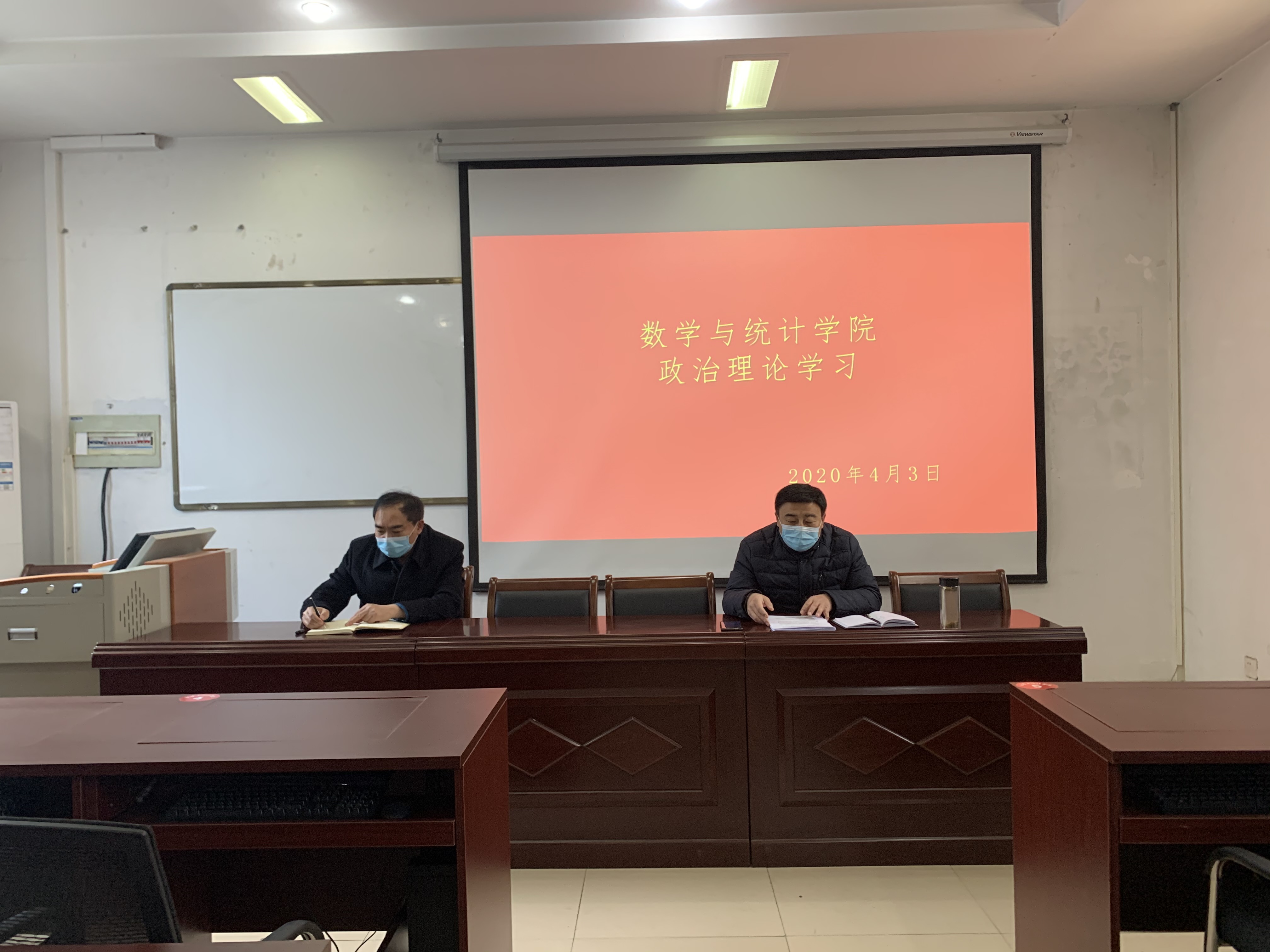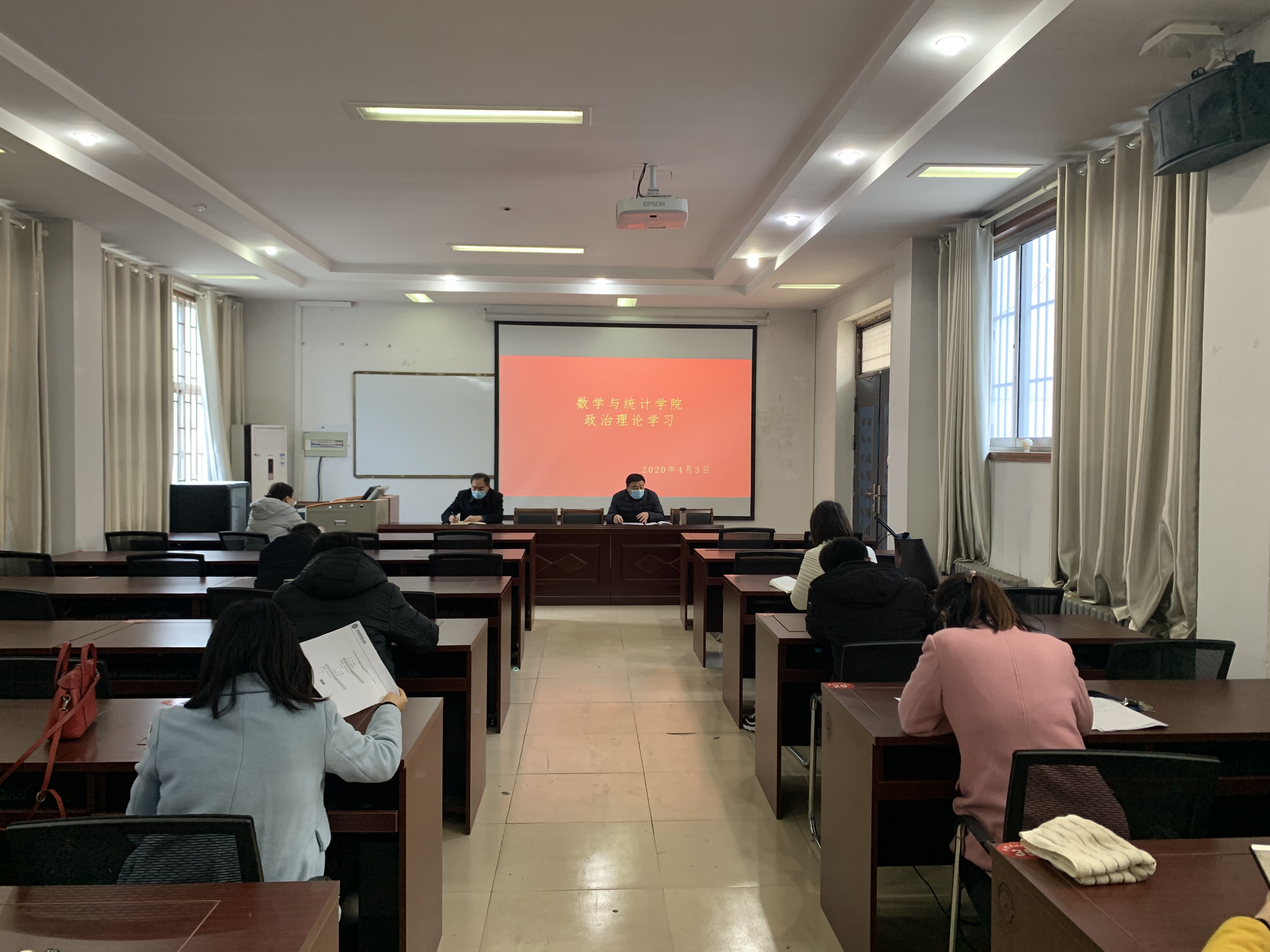 2020年4月3日下午,英国威廉希尔公司在数学楼会议室召开政治理论学习会议,学院领导班子、全体行政人员参加此次会议,会议由党总支书记陈东主持。