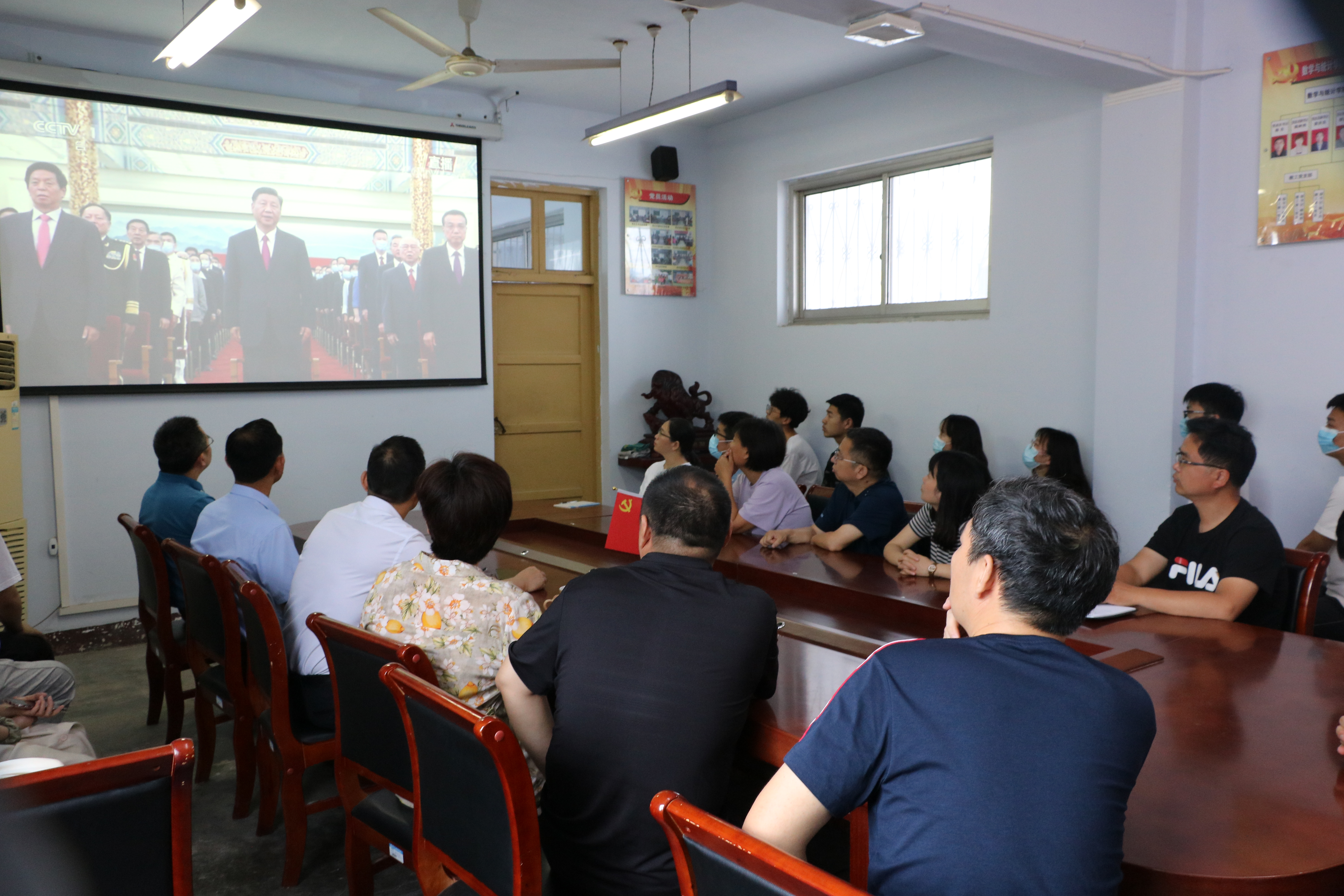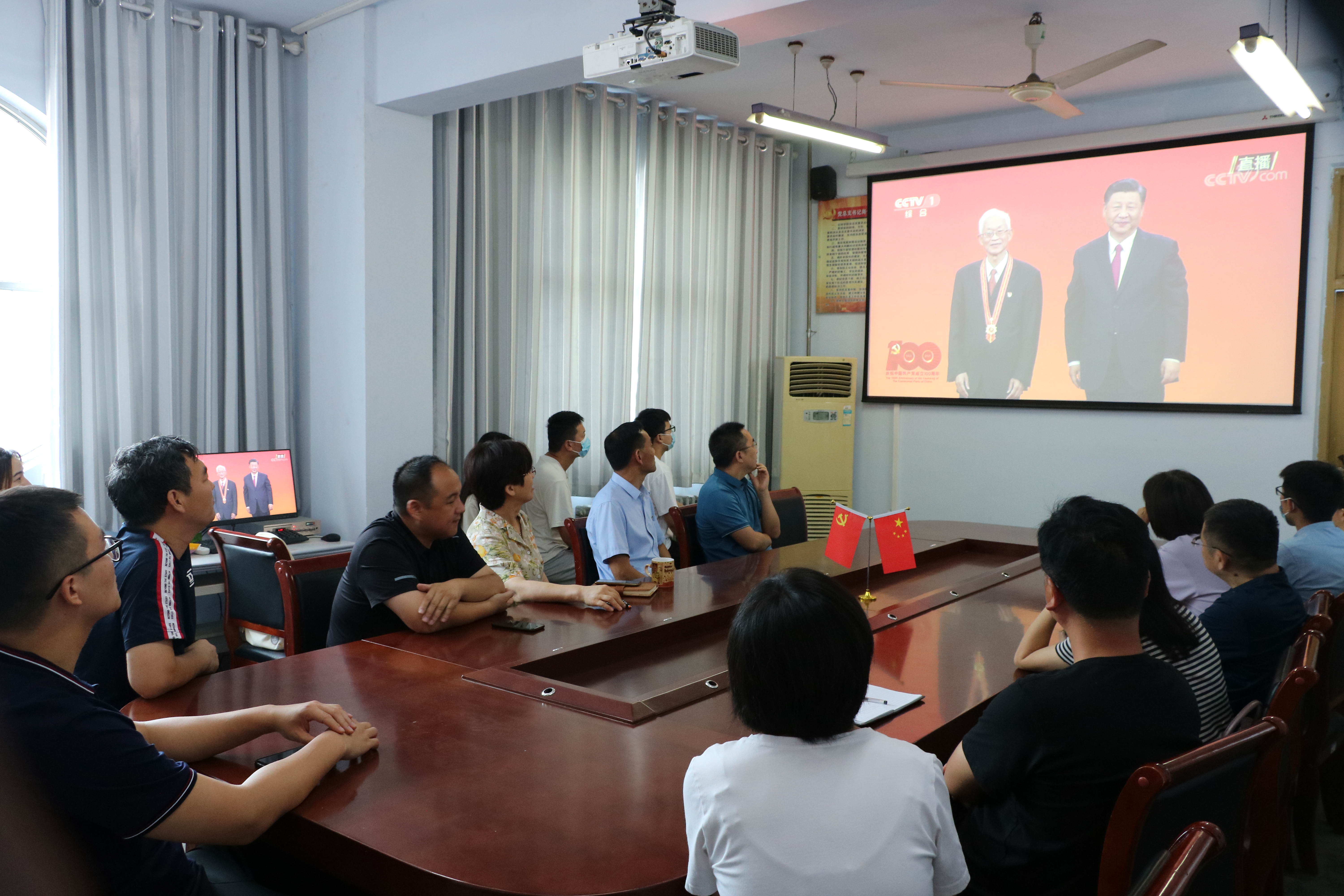 2021年6月29日上午英国威廉希尔公司党委组织师生党员代表在数学楼党建活动室观看“庆祝中国共产党成立100周年‘七一勋章’颁奖仪式”,学院领导班子、教职工党员代表、学生党员代表参加了此次活动。