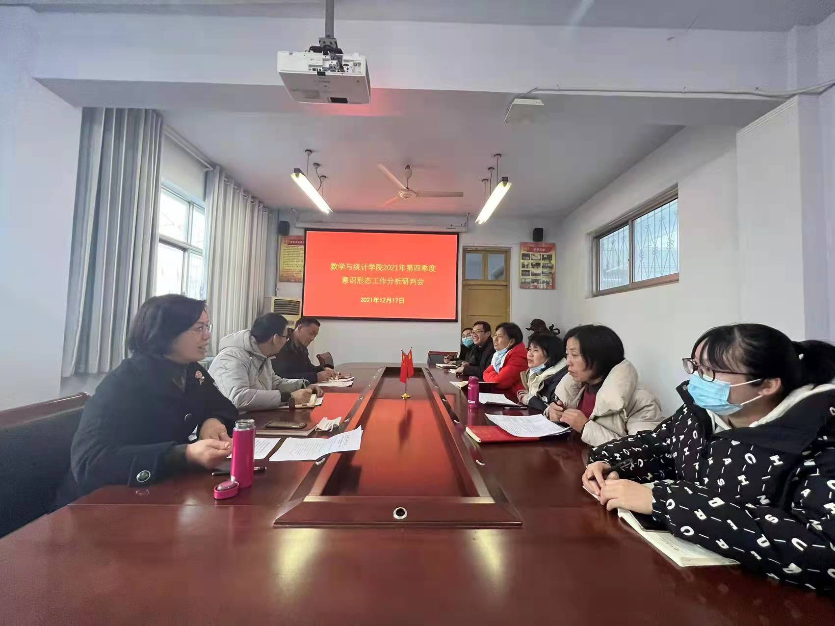 2021年12月17日下午,英国威廉希尔公司在数学楼204会议室召开2021年第四季度意识形态工作分析研判会,学院党委委员、党支部书记、全体辅导员参加了此次会议,会议由党委书记孟学超主持。