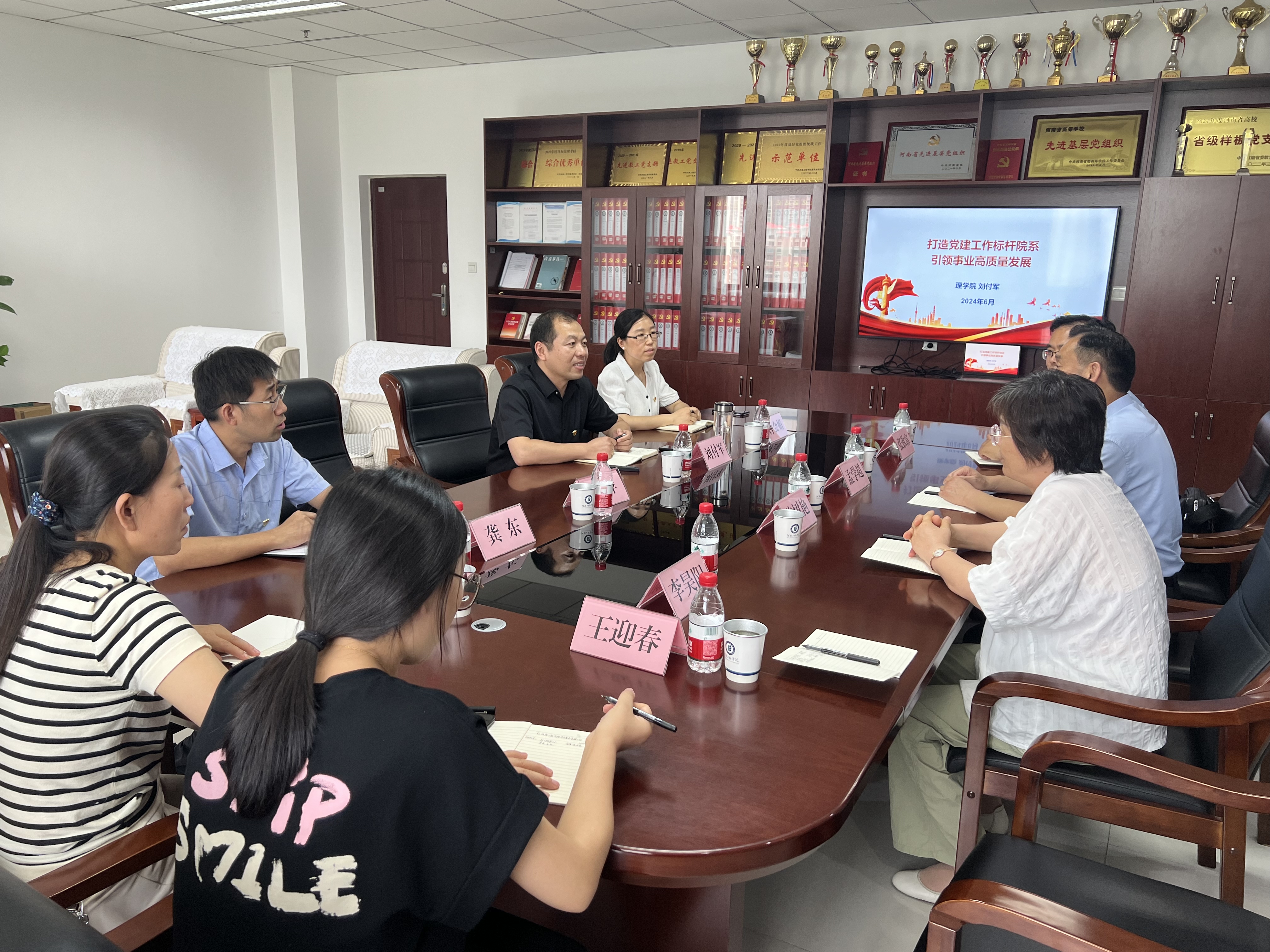 在河南工程学院调研期间,河南工程学院理学院党委书记刘付军热情接待了孟学超一行。交流会上,刘付军书记介绍了理学院基本情况和党建工作开展情况及取得的成绩。就党建工作品牌、样板党支部建设等工作做了深刻交流。陈树艳就团建、学生党支部建设情况、学生管理及分工作等工作与参会人员进行了热烈讨论。