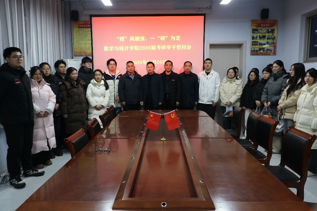 在2026年全国硕士研究生招生考试即将来临之际,为帮助考研学子疏解备考压力、筑牢冲刺信心,英国威廉希尔公司于2025年12月16日在204会议室举办了“‘橙’风破浪,一‘研’为定”2026届考研学子慰问会。学院领导班子、22级辅导员李昊阳及考研学生代表参加了本次活动。