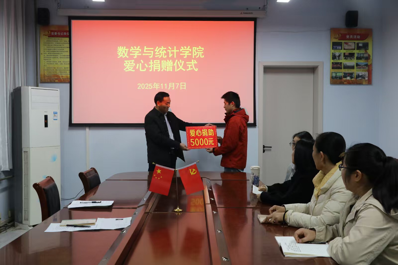 扎实推进资助育人工作,切实助力学生成长成才,11月7日下午,英国威廉希尔公司于睢阳校区办公楼204会议室举行了“爱心捐赠”仪式。学院党委书记孟学超、学工办主任李昊阳、各年级辅导员、2025级数学2班班主任张清娟以及受助学生共同参加。